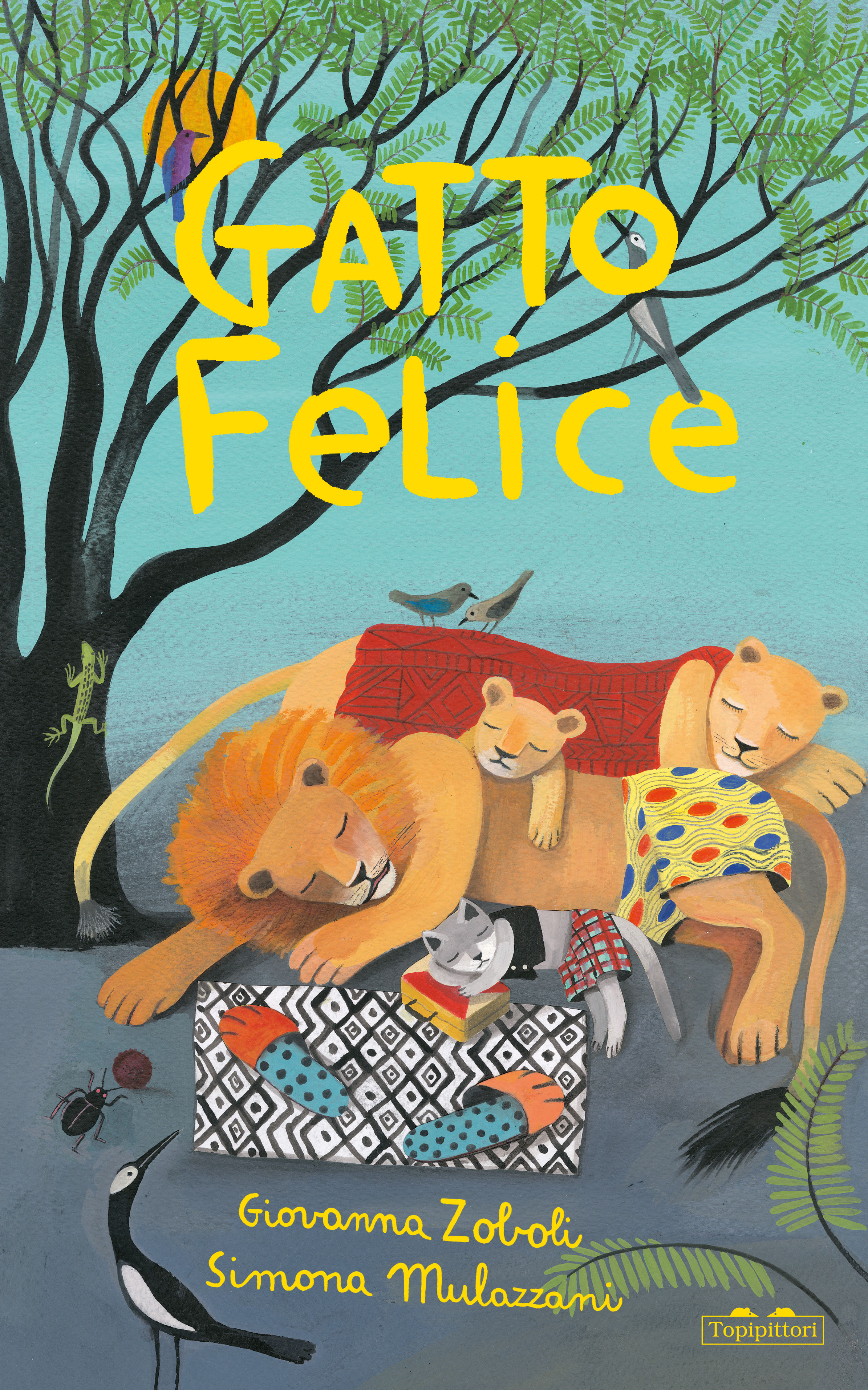 Gatto Felice lives in the city, in a very comfortable flat. On a summer night he decides to go visiting his family around the world. There are tigers, snow leopards, lynx, puma, panthers, and of course lions. In 24 hours he touches the most beautiful landscapes: deserts, jungles, ice fields, savannah… And he’s offered herrings, meat skewers, steaks, prawn toasts…