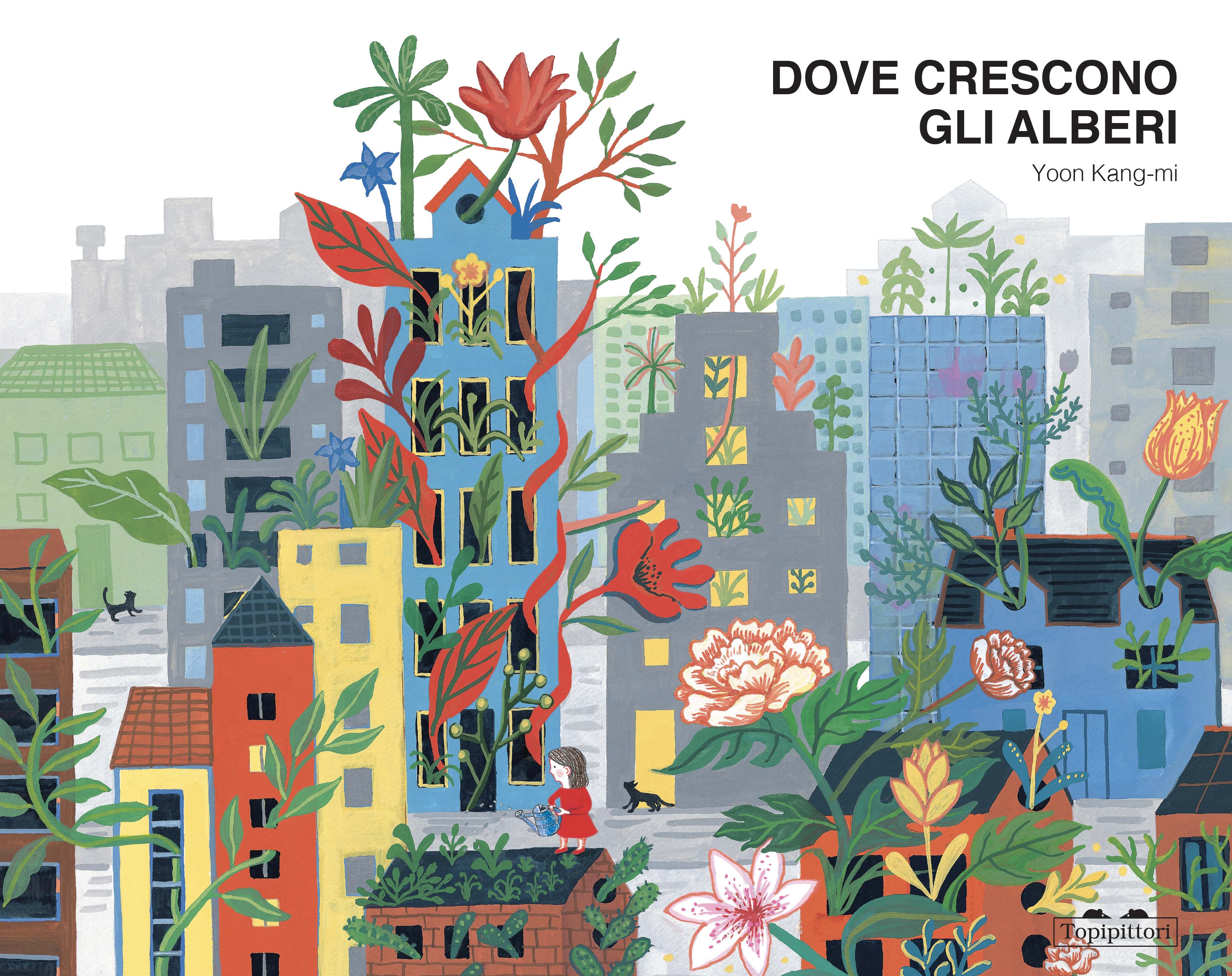 The air is polluted and people can't go out. So a little girl takes a sheet of paper and her colours, and starts to make a drawing: she begins by outlining a house, very similar to the grey building she sees from her window, then she decorates it with wild flowers on every floor. Then the building grows into a city, and in the middle of the city she puts an enormous greenhouse where the most beautiful animals live, with a lots of rooms for friends to meet, a swimming pool, a restaurant for snacks, a garden full of flowers and many, many trees. A delicate book by the Korean author and illustrator Yoon Kang-mi, to tell how children's imagination is all it takes to change the world. [Text in Italian]