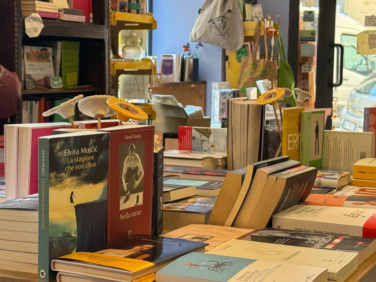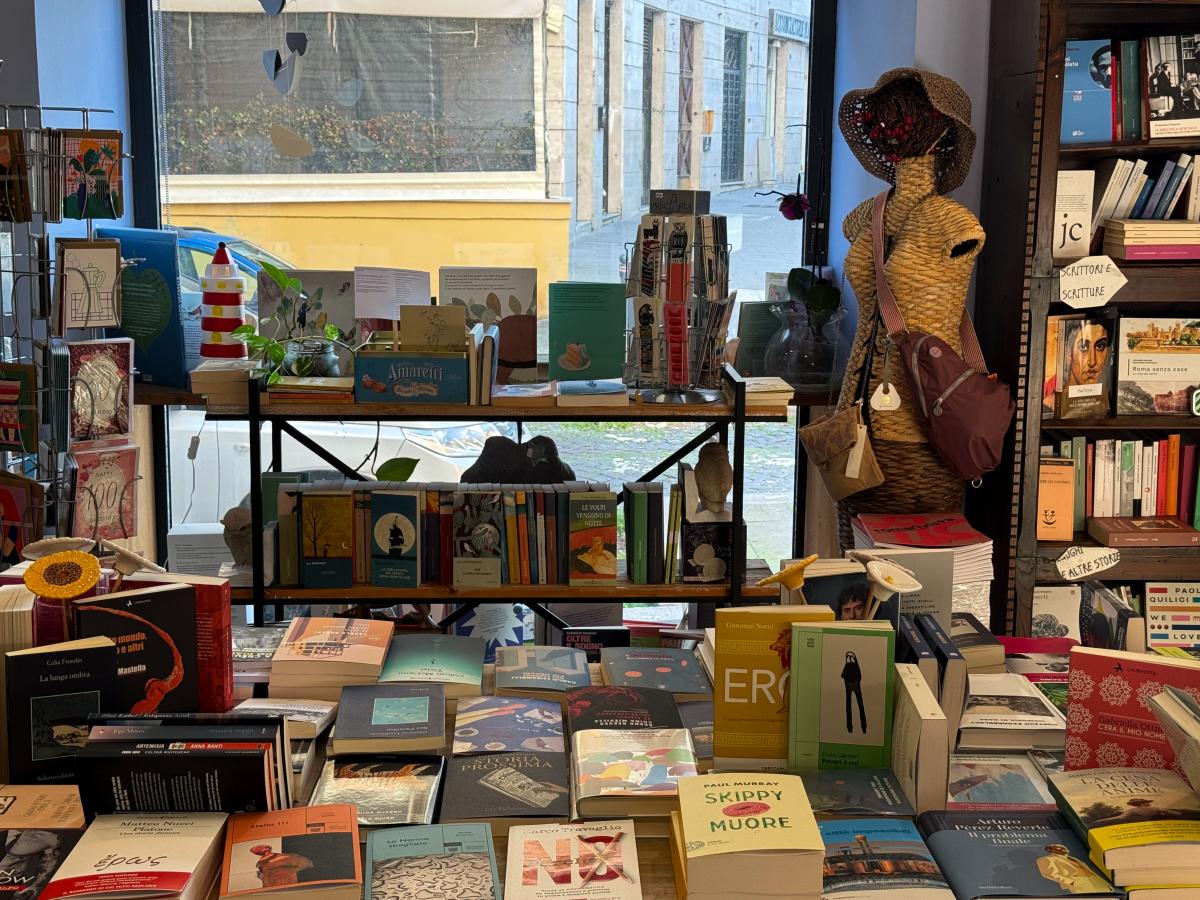 In questo scenario, le mappe di lettura sono qualcosa che sfugge alle tradizionali suddivisioni tematiche o di genere letterario. Nel nostro piccolo settore verde, per esempio, potresti trovare sia romanzi, sia saggi, sia albi illustrati, sia raccolte poetiche che in qualche modo strizzano l’occhio a chiunque si interessi di ambiente, natura, ecologia, trekking. O potresti trovare la storia in dialogo con l’antropologia, la filosofia e la psicologia, immaginando un movimento circolare della storia del pensiero e delle azioni umane. Nessun confine tra le discipline, ma un’apertura al dialogo. Forse niente di straordinariamente evidente ma divertente. Ci piace osservare i lettori che si concedono un tempo lento per crearsi propri percorsi di lettura.