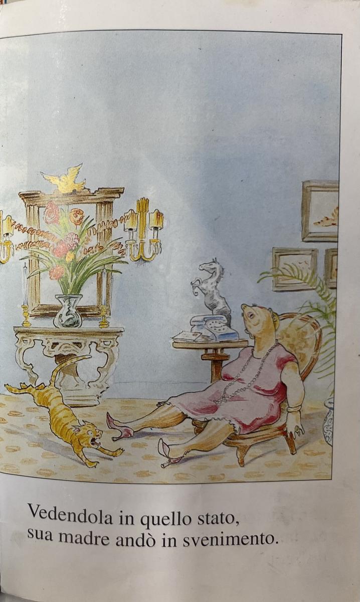 Questa espressività nelle illustrazioni fa spesso da contrappunto a un testo sobrio, misurato; ma chi si affida alle immagini non fatica poi a trovare quella precisa sfumatura di circospezione, sdegno, compiacimento nei volti e nei gesti così facondi.