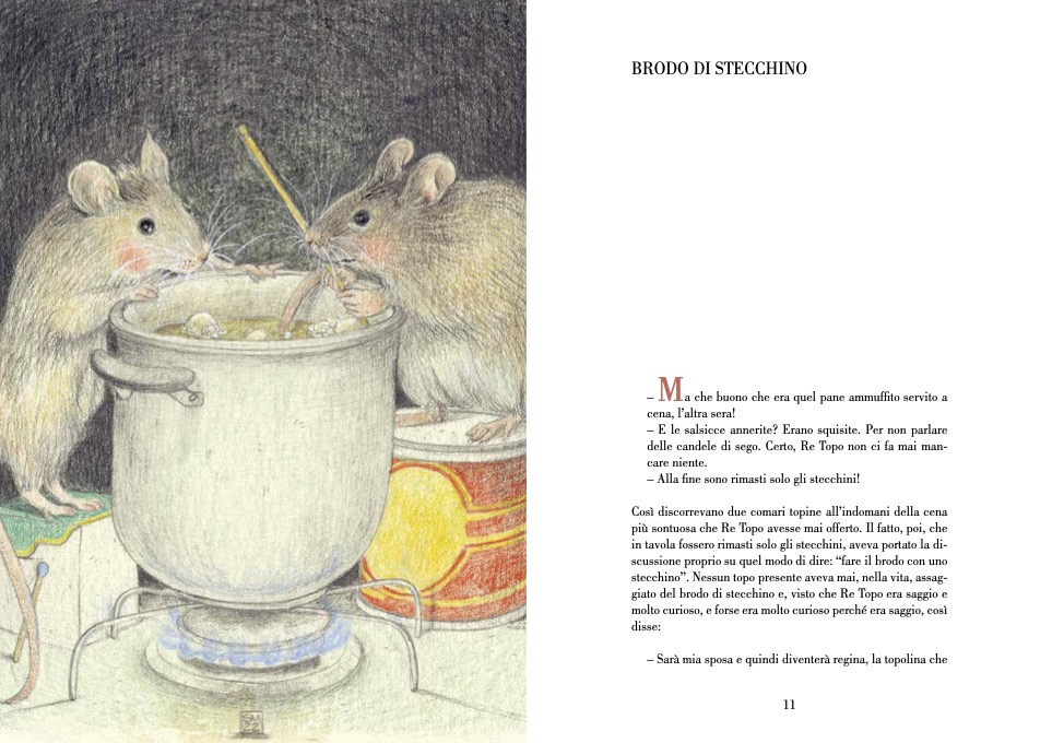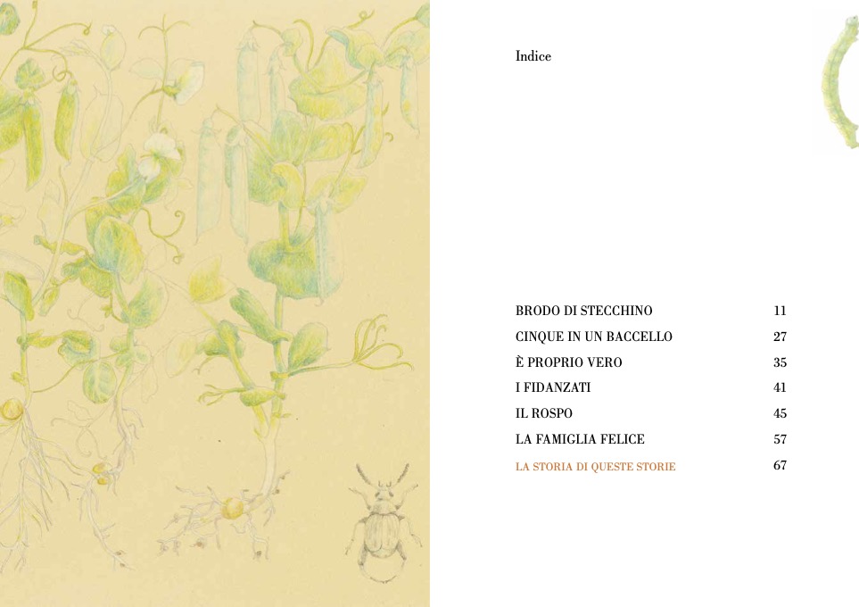 La raccolta propone sei racconti, di cui quattro sicuramente pochissimo conosciuti. Andersen scrisse oltre 150 fiabe, ma quelle che si leggono e che sono state riproposte in tutte le salse, sono quasi esclusivamente le famosissime: da La Sirenetta a Il brutto anatroccolo, da La pastorella e lo spazzacamino a Scarpette rosse. Ci piaceva spostare l’attenzione su una produzione più nascosta, ma ugualmente interessante, in cui i grandi temi di Andersen (la superbia, il pregiudizio, la stupidità, l’indifferenza, la dabbenaggine, temi quanto mai attuali) fossero interpretati da protagonisti inediti quali topi, rospi, rane, galline, piccioni, chiocciole, cicogne e perfino baccelli. Il risultato è un libro che dischiude la meraviglia del mondo naturale, osservato da molto vicino, nei dettagli più sorprendenti, e al tempo stesso fa riflettere su noi stessi e sulle trappole del mondo.