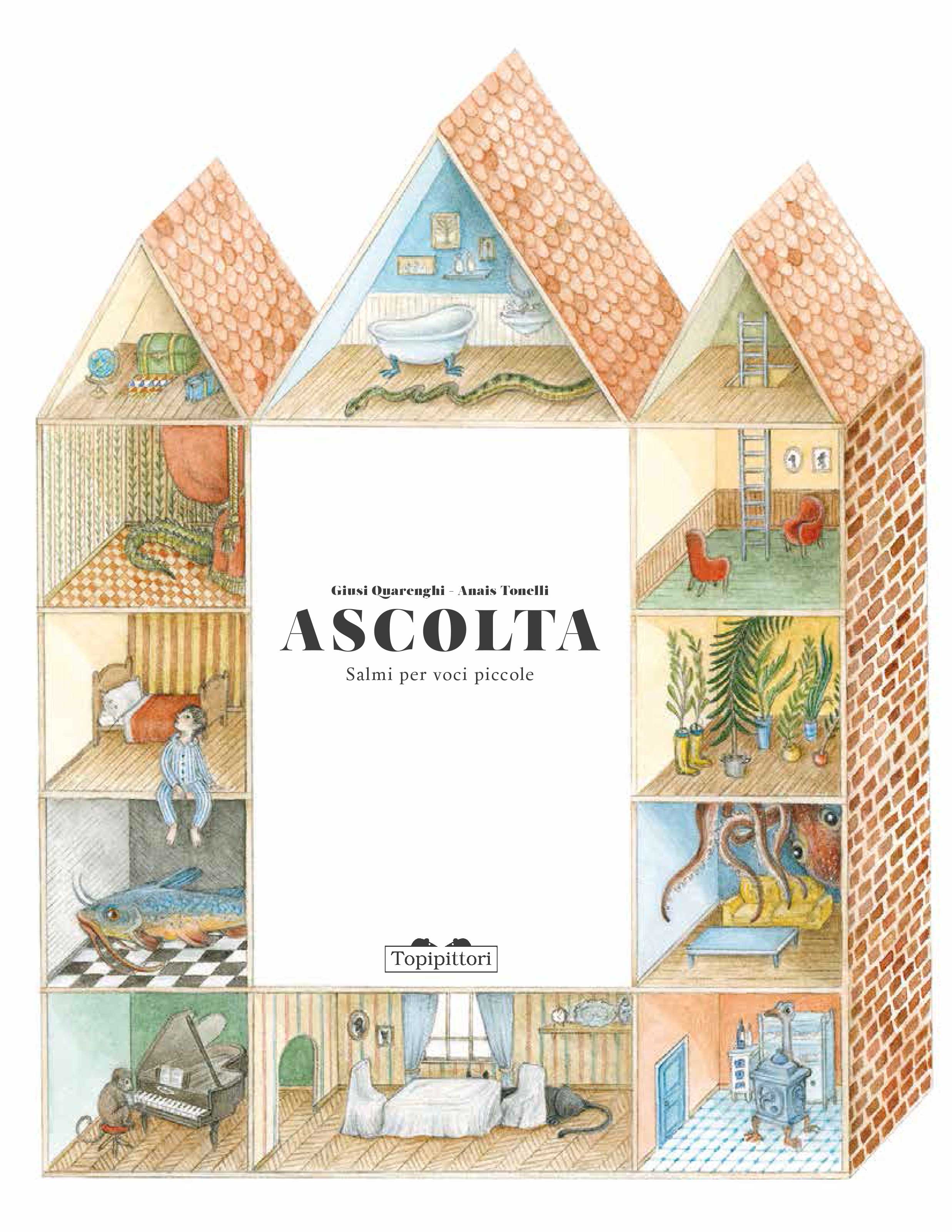 Listen. Psalms for little voices is a poetry collection that dates back to the Bible’s ancient times and reaches us today with unchanged strength, relevance and intensity. It’s a guiding voice that helps us discovering ourselves and the world, our need for protection, the fear, happiness, anger, love, despair that we all feel, children and grown ups. Giusi Quarenghi rewrites forty enchanting psalms, with illustrations by Anais Tonelli: a rising star of illustration, being this her first -astonishingly mature- picture book. [Text in Italian]