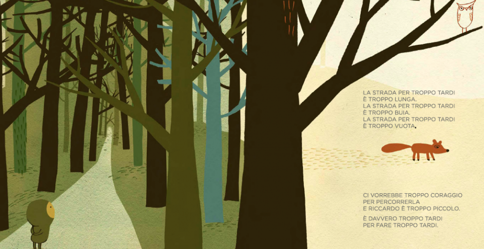 Little Riccardo wants to be too late. But everybody is telling him he can’t: too late is too dark; too late is too cold: too late is all closed. And Riccardo is too little. So, it is impossible. Unless... Unless he finds three wonderful friends, whom will help him reach the land of Too Late. A relentless, funny, surreal fantastic tale on children’s immense desires: their insatiable lust for adventure and magic and, at the same time, their immense need for love and protection.
