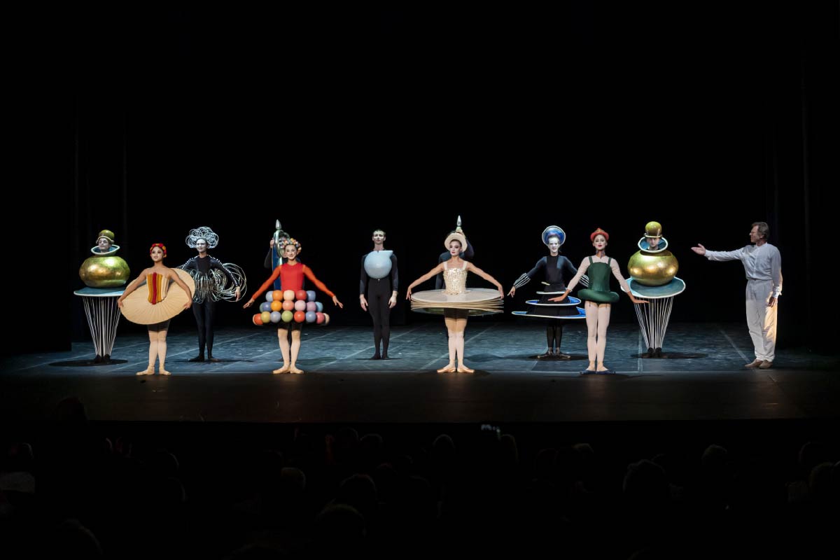 Era stata una vera e propria immersione, quella. E allora, eccola una certezza: il corpo doveva essere al centro di ogni azione. Infine, se il disegno con cui avevamo riempito la Sala Puà era stato un tracciato bianco e nero, quest’anno avremmo riportato sotto quelle volte il colore. I colori. Colorario. Inventario cromatico, quindi. Ma come si fa un inventario dei colori? Come uscire dalle esposizioni didattiche o dalle connessioni forzate che siamo soliti fare dei colori? Come trasformare questo inventario in un’azione performativa? Durante l’incredibile esperienza che fu il Bauhaus, Oskar Schlemmer, pittore e coreografo (per l'appunto) della scuola, portò sulla scena ballerini vestiti di pesantissimi costumi colorati fatti di carta, ferro, plastica, stoffa e legno. Non era un vero e proprio balletto, ma piuttosto una combinazione di danza, geometria, colori, pantomima e musica. Non gli interessava la danza fatta di perfetti movimenti e di linee aggraziate quanto piuttosto il corpo umano e il modo in cui esso, facendosi veicolo di colori e forme, si fondeva, muovendosi, con lo spazio intorno. Schlemmer riporta sul palcoscenico esattamente quello che fanno i pittori sulla tela capendo che il colore non è una formula statica, ma un’entità mutevole, capace di modificarsi con la luce e con il movimento.