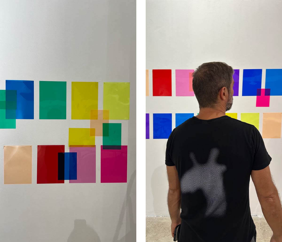 È qui che le gelatine appese “di là” diventano strumenti per colorare la luce “di qua”.