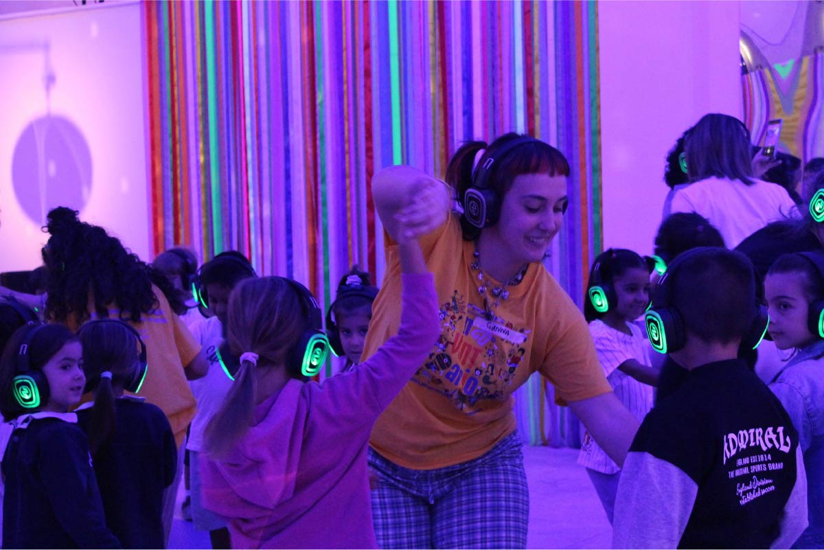 È un viaggio sensoriale che invita a vivere il colore con tutto il corpo, trasformando lo spazio in una tela dinamica dove il gesto e il suono sono i veri protagonisti. L'avventura inizia nel momento in cui ogni partecipante indossa un paio di cuffie: è qui che la voce narrante di Catia e una colonna sonora avvolgente composta da Enrico Venturini danno il via a un viaggio nell’ altrove. Ognuno è immerso in una bolla sonora che scaccia via le distrazioni esterne e porta tutta l’attenzione su un’unica guida: la narrazione che si fa istruzione coreografica e sensoriale.
