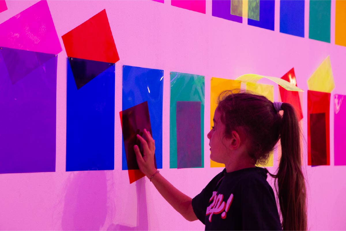 Neppure chi progetta un allestimento o un laboratorio sa fino in fondo l’effetto che questo avrà alla fine. Potrebbero accadere cose che non si erano preventivate e che aprono a nuove possibilità. Puoi pensare di appendere, ad esempio, una serie di gelatine colorate a una parete e anche immaginare un sistema che permetta ai bambini di prenderle e riattaccarle. Ma accade che, mentre le sistemi, la carica elettrostatica di ogni foglio sveli una magia: la gelatina resta attaccata da sola alle pareti. Posso sovrapporla, sottoporla, accostarla creando davvero infinite sfumature di colore.