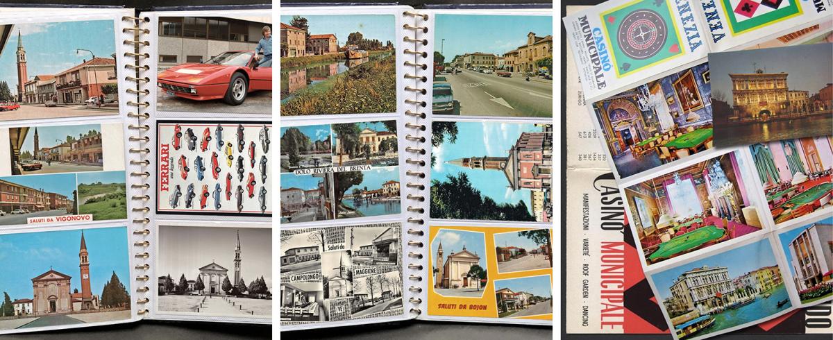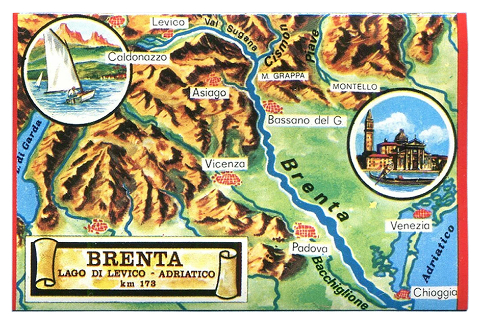 Come detto, in questo libro, assieme e attorno al fiume, scorre anche tanto paesaggio Veneto, soprattutto le zone della Riviera del Brenta e della Saccisica ma anche Venezia e la laguna. Ricostruire com’erano negli anni Settanta e Ottanta è stata una caccia al tesoro. Ho messo insieme una collezione di cartoline dell’epoca di ogni più piccolo paesino, pubblicità varie e anche qualche figurina dell’album Tutta Italia del 1985. Mi sono persa tra le pagine di vecchie guide del Touring Club e di volumi di architettura minore veneta di Igino Marangon con dei disegni meravigliosi.