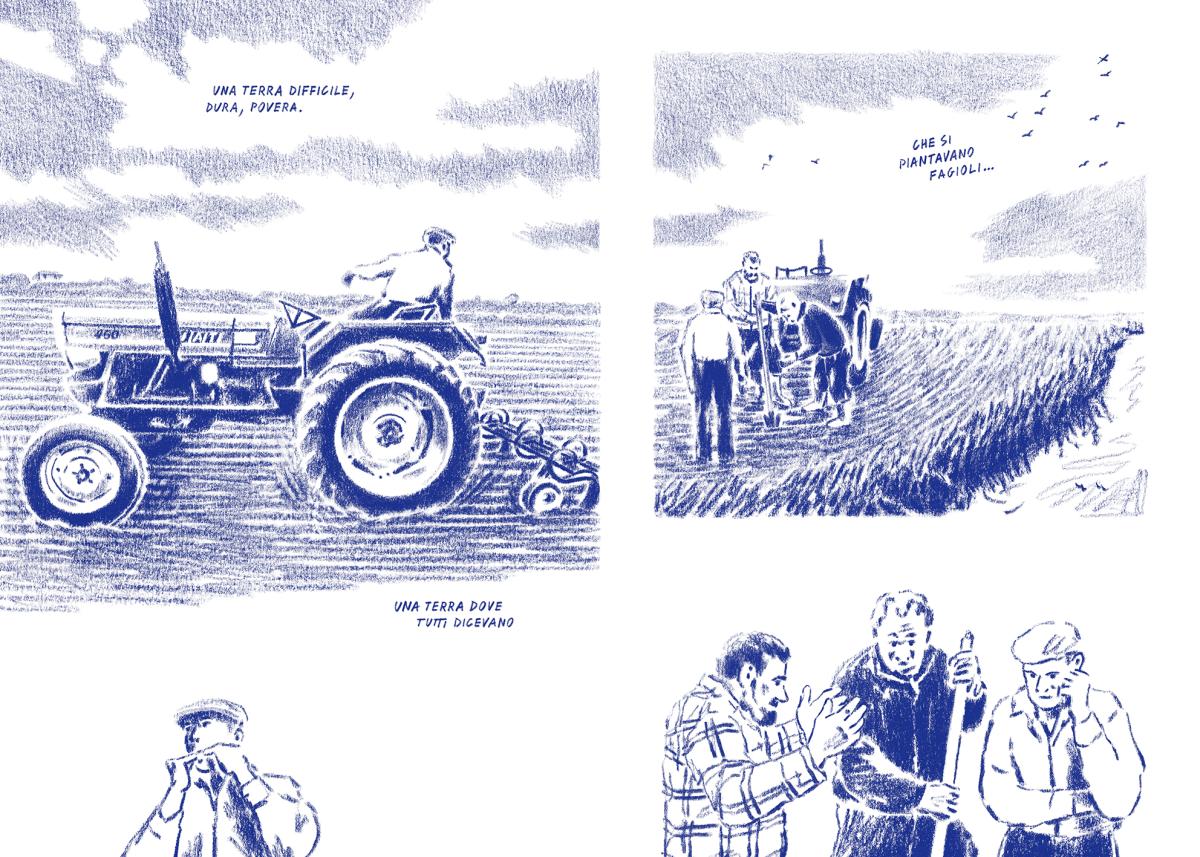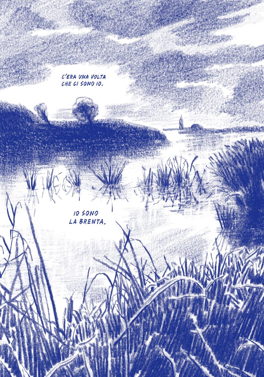 Abbiamo capito presto – anche solo per nostra inclinazione e competenza – che quello a cui stavamo arrivando non era tanto un’inchiesta giornalistica a fumetti, ma forse più un racconto, un racconto di cronaca illustrato. Marco aveva immaginato un libro corale, in cui i testimoni si alternavano come fuori dal tempo, ognuno col suo tassello di storia. Il fiume ne è diventato cornice, elemento di raccordo, ma anche contenitore: uno spazio in cui immergersi, tuffarsi.