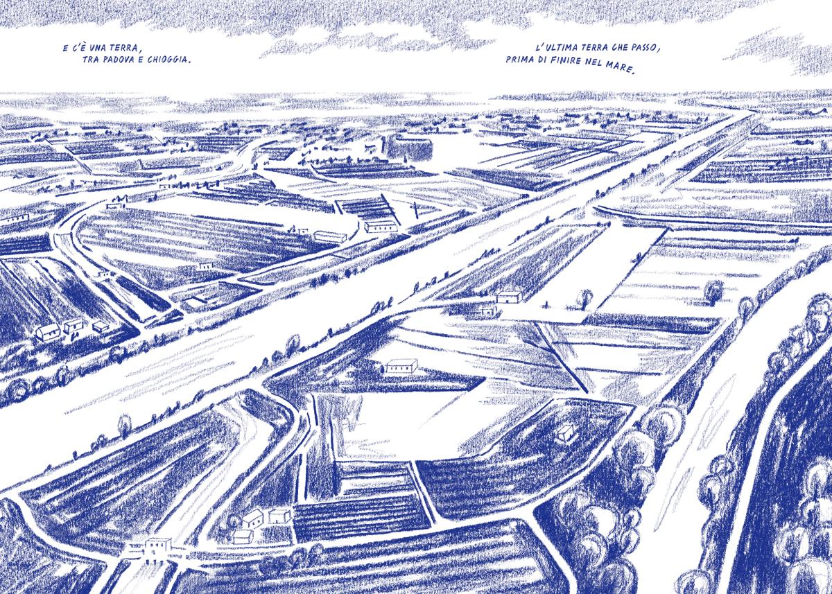 La pianura rurale solcata da canali del basso Veneto è dove questo libro comincia. Attraversandola l’orizzonte si fa sterminato, fino a confondersi col mare. Lo spunto per usare le nuvole a cornice delle parole del fiume lo devo ai suoi cieli larghissimi.