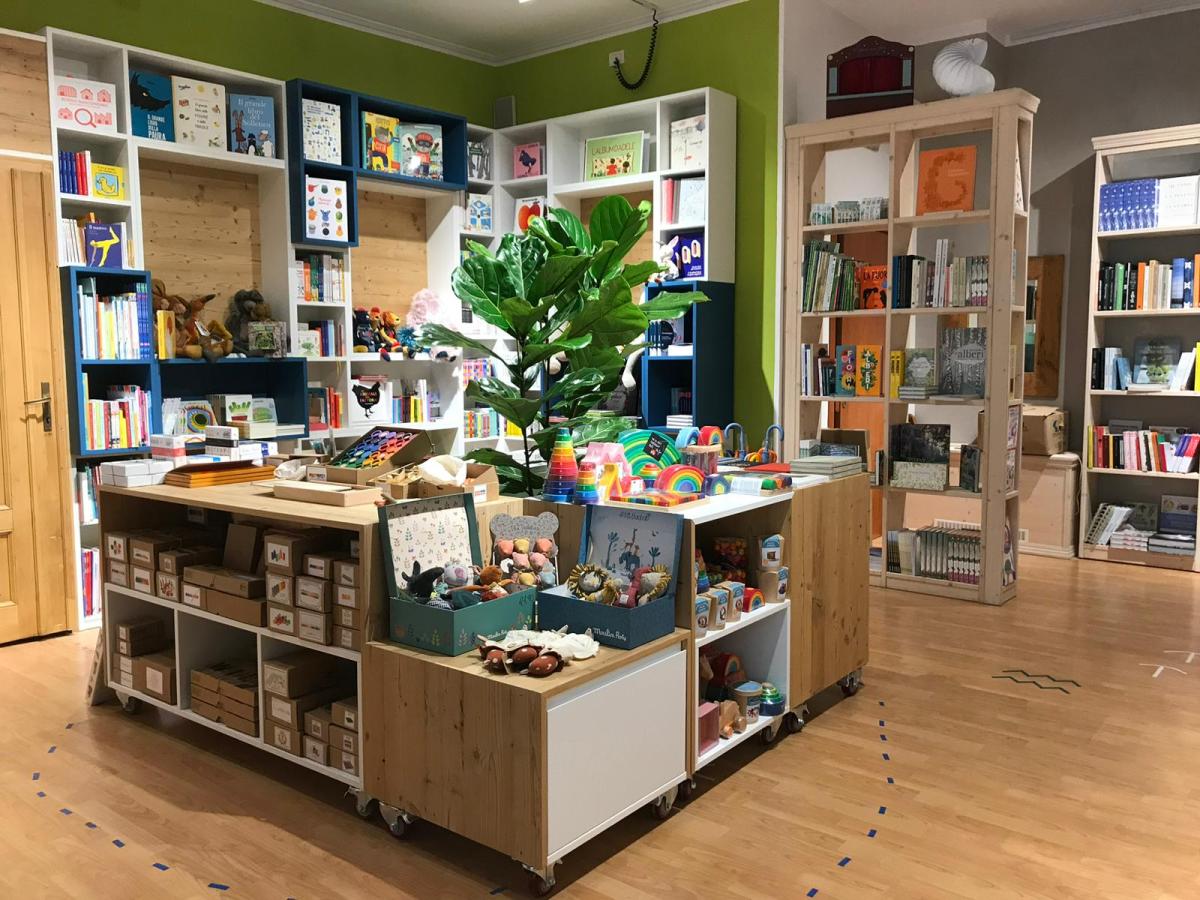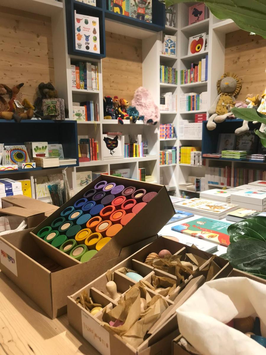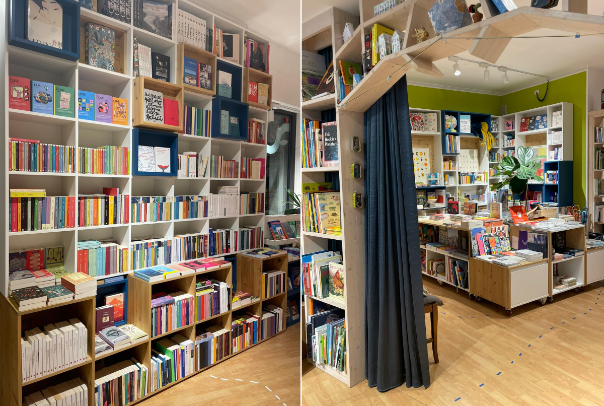 La libreria, fortunatamente, è piuttosto grande e questo ci permette di sperimentare molto. Se all’inizio pensavo di concentrare la proposta sugli albi illustrati, dei quali mi sono innamorata durante la precedente esperienza lavorativa tra gli scaffali, col tempo ho cambiato idea. Oggi la Piccoloblu può apparire un po’ atipica, forse: molti la identificano come una libreria per bambine e bambini, ma in realtà al suo interno trovano posto anche tanti titoli per adulti. Negli anni abbiamo ampliato la sezione dedicata alla narrativa e ai saggi e ci divertiamo a mescolare i generi: c’è una stanza, per esempio, in cui cartonati e libri d’arte convivono.