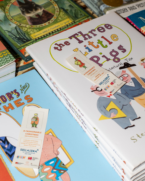 Poi gli incontri con le persone sono stati fondamentali. Steven Guarnaccia, illustratore di grandissimo talento e personalità, è stato sempre al nostro fianco e con lui abbiamo organizzato eventi e promosso iniziative. In libreria ci sono alcune sue meravigliose tavole originali e l’anno scorso, in occasione del Natale, ci ha aiutato ad allestire una mostra A fashionable Christmas, tutta dedicata alla moda e allo stile nei libri per bambini, con l’aiuto di Marcella Terrusi.