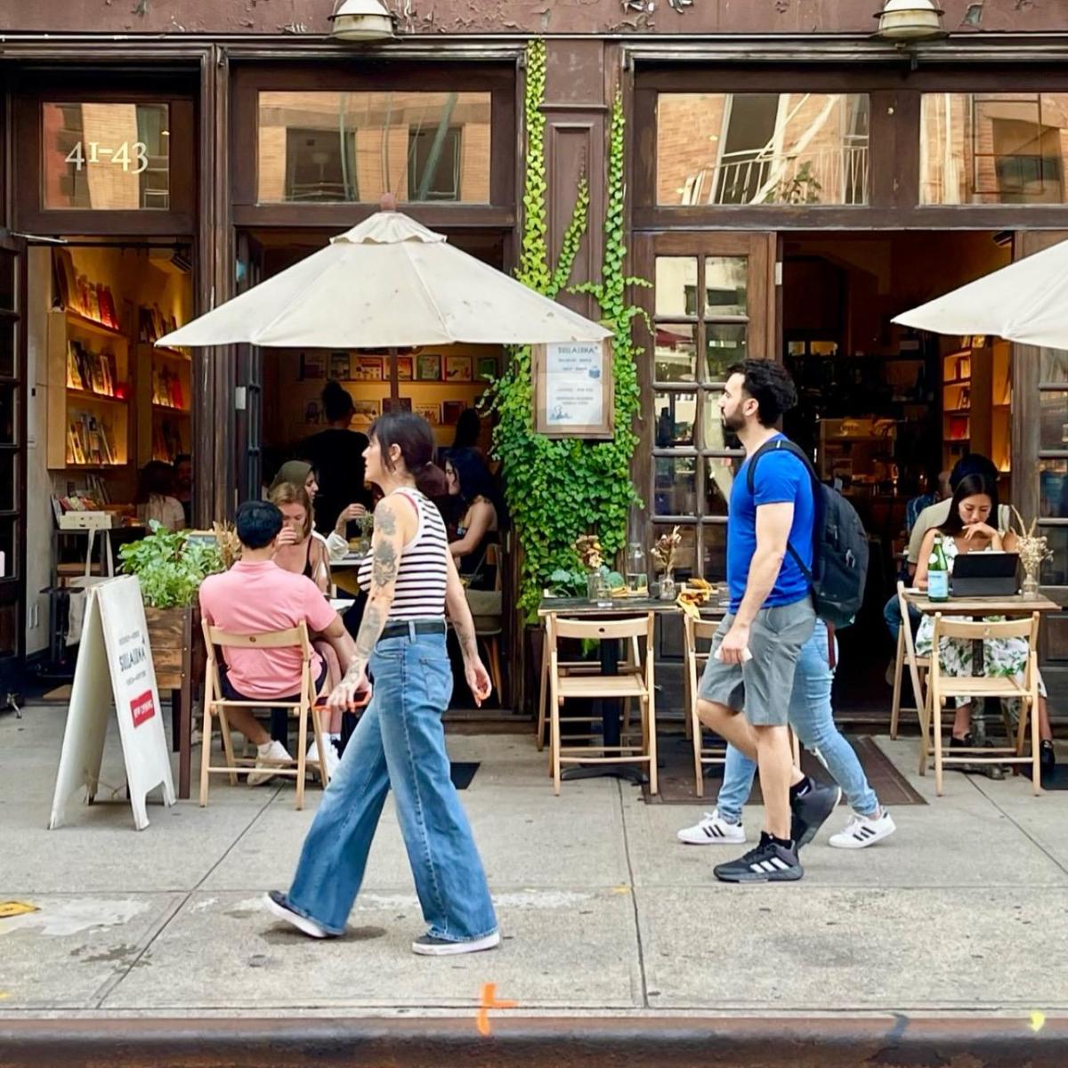 Avevamo già studiato quartieri e situazioni, ma quando ci siamo trovati  a Carmine Street, nel cuore del Greenwich Village, abbiamo sentito una forte connessione con il luogo. Aveva appena chiuso una libreria storica per problemi legati alla recente pandemia. Potevamo ancora vedere la sua insegna “Un-oppressive Non-imperialist Bookstore”. Era un chiaro segnale, e il nostro istinto è stato quello di portare di nuovo i libri in questa strada e in questo quartiere, decisamente unico per la sua ricchezza di storia e di storie.