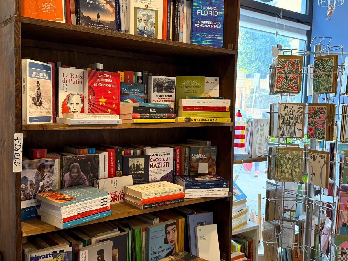 In questo scenario, le mappe di lettura sono qualcosa che sfugge alle tradizionali suddivisioni tematiche o di genere letterario. Nel nostro piccolo settore verde, per esempio, potresti trovare sia romanzi, sia saggi, sia albi illustrati, sia raccolte poetiche che in qualche modo strizzano l’occhio a chiunque si interessi di ambiente, natura, ecologia, trekking. O potresti trovare la storia in dialogo con l’antropologia, la filosofia e la psicologia, immaginando un movimento circolare della storia del pensiero e delle azioni umane. Nessun confine tra le discipline, ma un’apertura al dialogo. Forse niente di straordinariamente evidente ma divertente. Ci piace osservare i lettori che si concedono un tempo lento per crearsi propri percorsi di lettura.