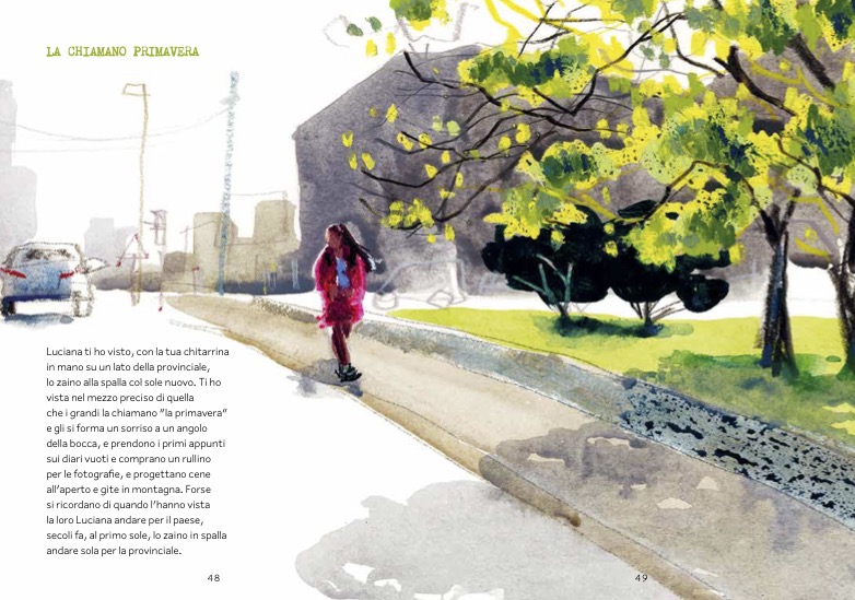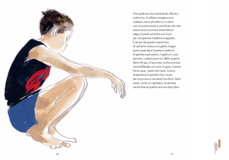 Ai preadolescenti sono destinate almeno due raccolte di Silvia Vecchini Poesie della notte del giorno di ogni cosa intorno e Acerbo sarai tu. Oggi a queste si aggiunge, appunto, Un quaderno nuovo, di Valentino Ronchi, poeta e scrittore molto legato all’osservazione e all’espressione di Milano e del suo hinterland. La scelta della mano giusta per illustrarlo è caduta su Alessandra Lazzarin, disegnatrice dotata di un talento speciale per la descrizione dei corpi in crescita e in movimento di ragazzini e ragazzine, nonché per la narrazione di atmosfere e paesaggi urbani.