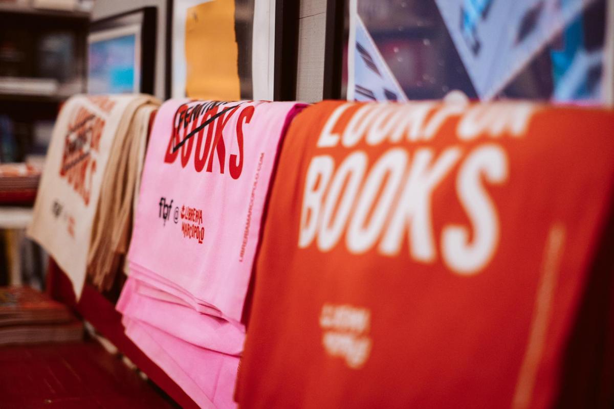Inizialmente le borse per i libri avevano al centro solo il nostro logo. A un certo punto, però, mi sono imbattuta in questa espressione inglese “Don’t look for love, look for”, che si può completare come si vuole – “pizza”, “coffee”, “dogs”, etc. “Books” è venuto da solo. È una frase divertente e forse anche un po’ spavalda, come lo siamo noi tre, d’altronde.