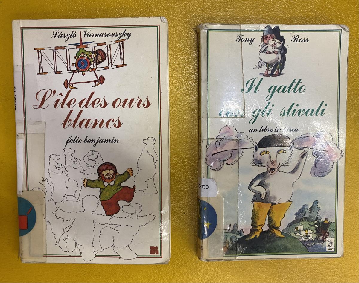 A sinistra Gastone il bel pigrone di Tony Ross (Edizione EL, 1993), a destra Che succede a Genoveffa? di David Small (Edizioni EL, 1993)