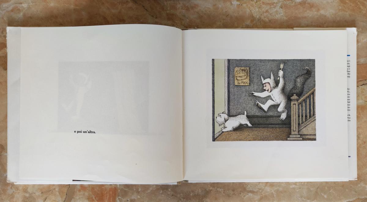 Eccomi così ad elencare scale appartenenti alla cultura visuale che più mi è familiare: ad esempio tra i libri a figure, prima tra tutte, la scala da dove Max, il bambino più famoso dell'albo illustrato (Maurice Sendak, Nel paese dei mostri selvaggi, Adelphi), si lancia inseguendo il suo cane. Nonostante Sendak inquadri solo parzialmente la scala, questa è tutto tranne che un particolare senza importanza: è elemento al limite del visibile e trampolino di lancio per Max, è soglia ed energia: ne vediamo una minima parte, ma è potentissima.