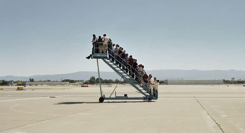 L’artista Adrian Paci è famoso per il suo Centro di permanenza temporanea, video del 2007 che ritrae un gruppo di presunti passeggeri di un volo sulla scala che solitamente conduce all'abitacolo dell'aereo, senza però che quest'ultimo sia presente: una dopo l’altra, le persone salgono sulla scala, ognuna portando con sé la sua storia, il suo dolore e le sue speranze disilluse: da un lato l'assenza dell'aereo, dall'altro la compresenza affollata in uno spazio ridotto di migranti che attendono.