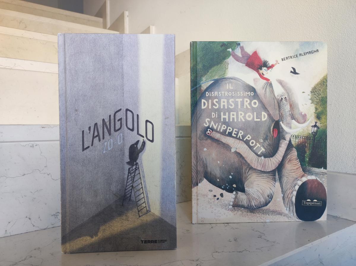 Proseguendo questa ricognizione di scale nell’albo illustrato, vengono alla mente quelle del silent L'angolo (Zo-O, Terre di Mezzo, 2025): inizialmente, al corvo protagonista basta un panchetto per decorare le pareti, poi ha bisogno di una scala allungabile per arrivare fino al soffitto, riproducendo per analogia il processo di crescita di altri elementi nella stanza arredata passo dopo passo dal protagonista, come in una metafora pedagogica dove non c'è vita senza cura.