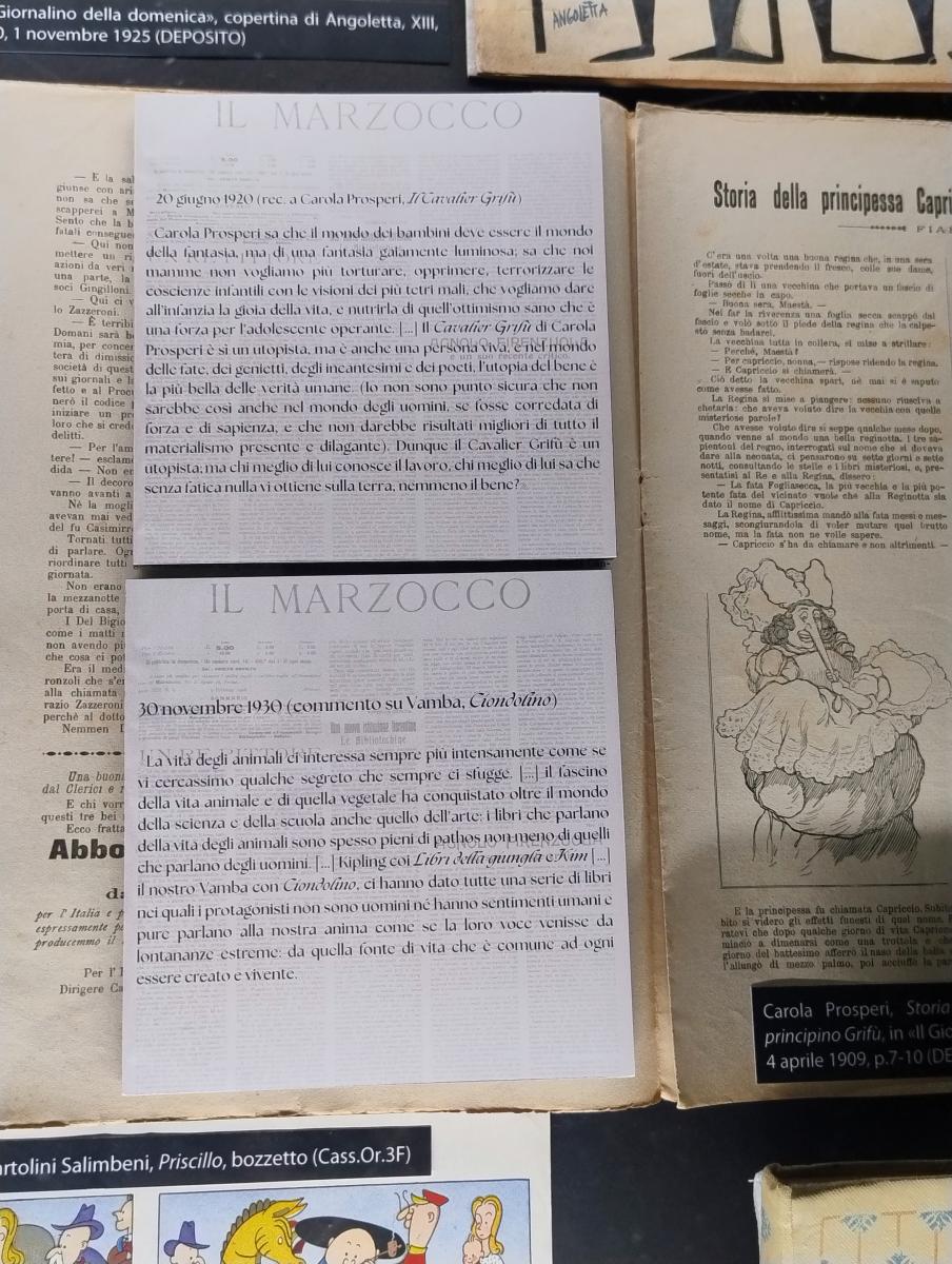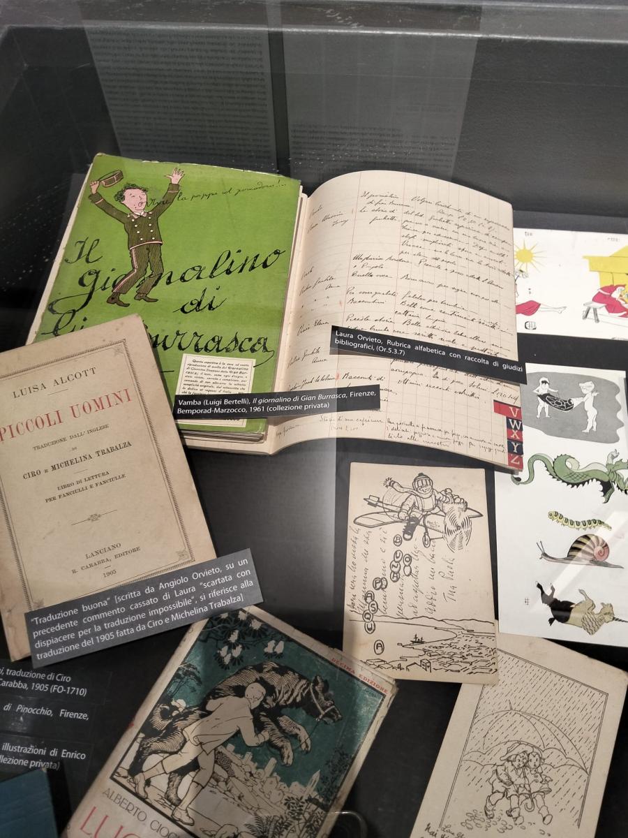 A proposito di intenti educativi e di pedagogia, le curatrici hanno scelto di includere tra i vari documenti selezionati per l’esposizione anche i libri per bambini e ragazzi per i quali Orvieto ha lasciato una nota critica significativa: nelle vetrine della mostra, accanto a opere come Il Giornalino di Gianburrasca o Piccoli Uomini di Louisa May Alcott, c’è infatti la riproduzione del commento di Orvieto, originariamente pubblicato nella sua rubrica dedicata ai bambini sul Marzocco, che in poche righe ci dà esattamente la misura di quanto l’intento pedagogico ed educativo fosse per lei indissolubilmente legato alle storie da proporre ai piccoli lettori. Dai suoi commenti si evince, quindi, una certa avversione per le marachelle e per le birichinate - Il giornalino di Gian Burrasca viene definito una storia di “volgari birichinate di un ragazzaccio” - ma anche una notevole attenzione per le traduzioni, come quella di Piccoli Uomini di Louisa May Alcott, a cura di Ciro e Michelina Trabalza, che fu sonoramente bocciata per i troppi vocaboli inglesi italianizzati.