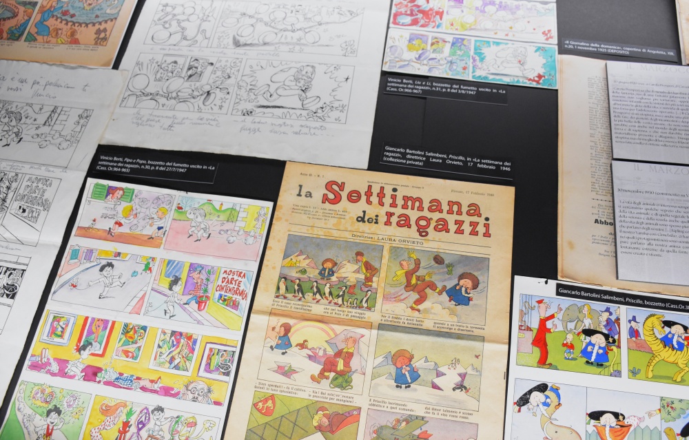 Al centro della sala che ospita la mostra ci sono le opere della protagonista della festa - ricordiamo tra le più celebri Le storie della storia del mondo e Leo e Lia, storia di due bimbi italiani con una governante inglese - circondate da “stanze” in cui trovano spazio sia gli “adulti” (la generazione di scrittori che ha preceduto quella di Orvieto, tra i quali Jules Verne e Louisa May Alcott) che le amiche fiorentine e quelle di provenienza più lontana. Orvieto aveva conosciuto proprio al Vieusseux donne come Sonia Naldi, Amelia Pincherle Rosselli, Maria Bianca Viviani della Robbia: grazie all’amore per la scrittura, la critica letteraria e l’illustrazione tra loro si era creata una vera e propria rete solidale, che si estese oltre i confini della città e che portò contributi importanti anche in ambito sociale. La mostra è quindi l’occasione per esplorare il lavoro di Orvieto, ma anche le opere di molte donne brillanti con le quali la scrittrice fiorentina aveva stretto rapporti vivaci, oggi non sempre ricordate quanto meriterebbero per il valore e l’ampio respiro culturale e civile del loro lavoro.